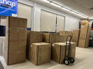 It’s unloaded and waiting to be put together this afternoon.