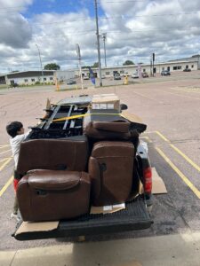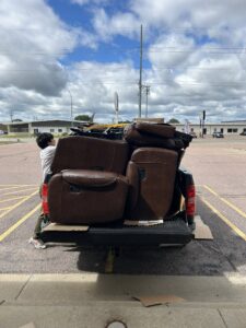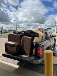 2 Queen mattresses, a 3 piece sofa loveseat recliner set, and 2 humans all in one truck π²π²π²